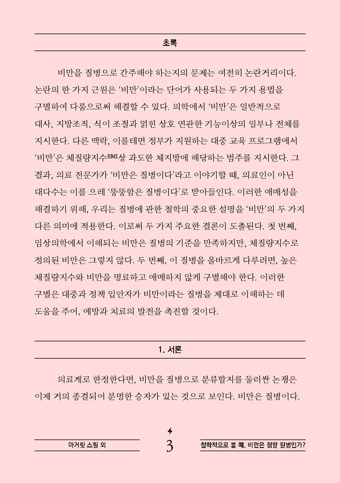 자료 모든 자료 보기 기타 텍스트 의학철학 2024년 1월 F022 철학적으로 볼 때, 비만은 정말 질병인가? Philosophically, is obesity really a disease? 글: 마거릿 스틸, 프랜시스 M. 피누케인 번역: 박승만 가격: 2,000원 PDF 신청